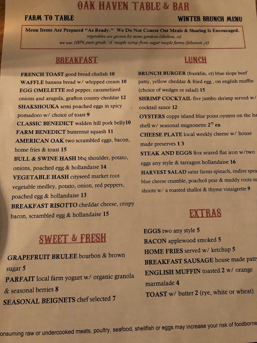 Oak Haven Table & Bar Menu (Updated October 2025)